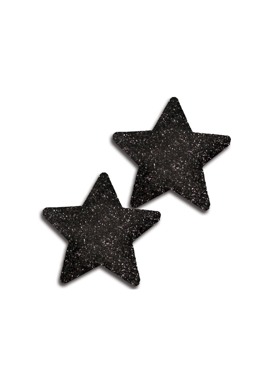 Black Glitter. Self adhesive flat star pasties.100% Polyester