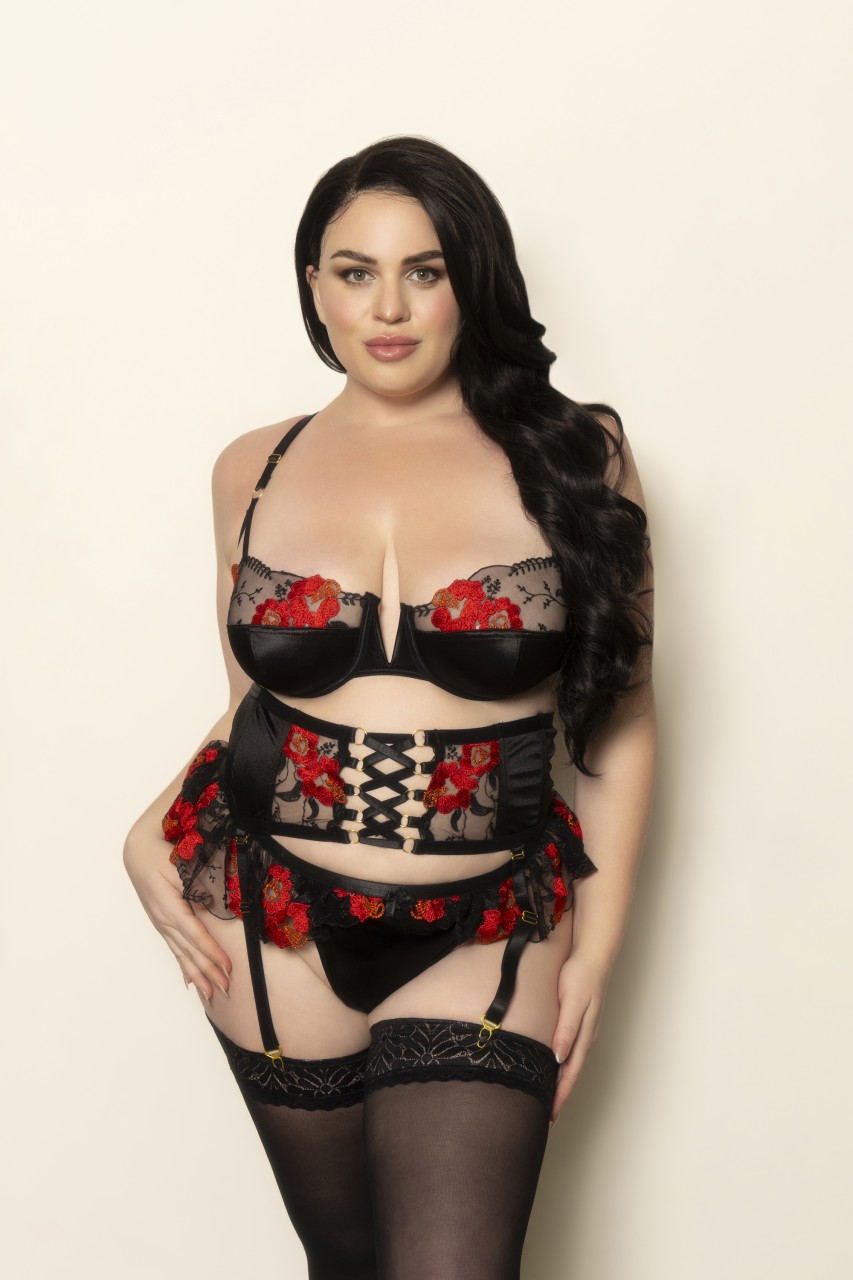Seven til Midnight – Plus Size Three piece bra set. Embroidered floral lace and satin bra with underwire – STM11670X