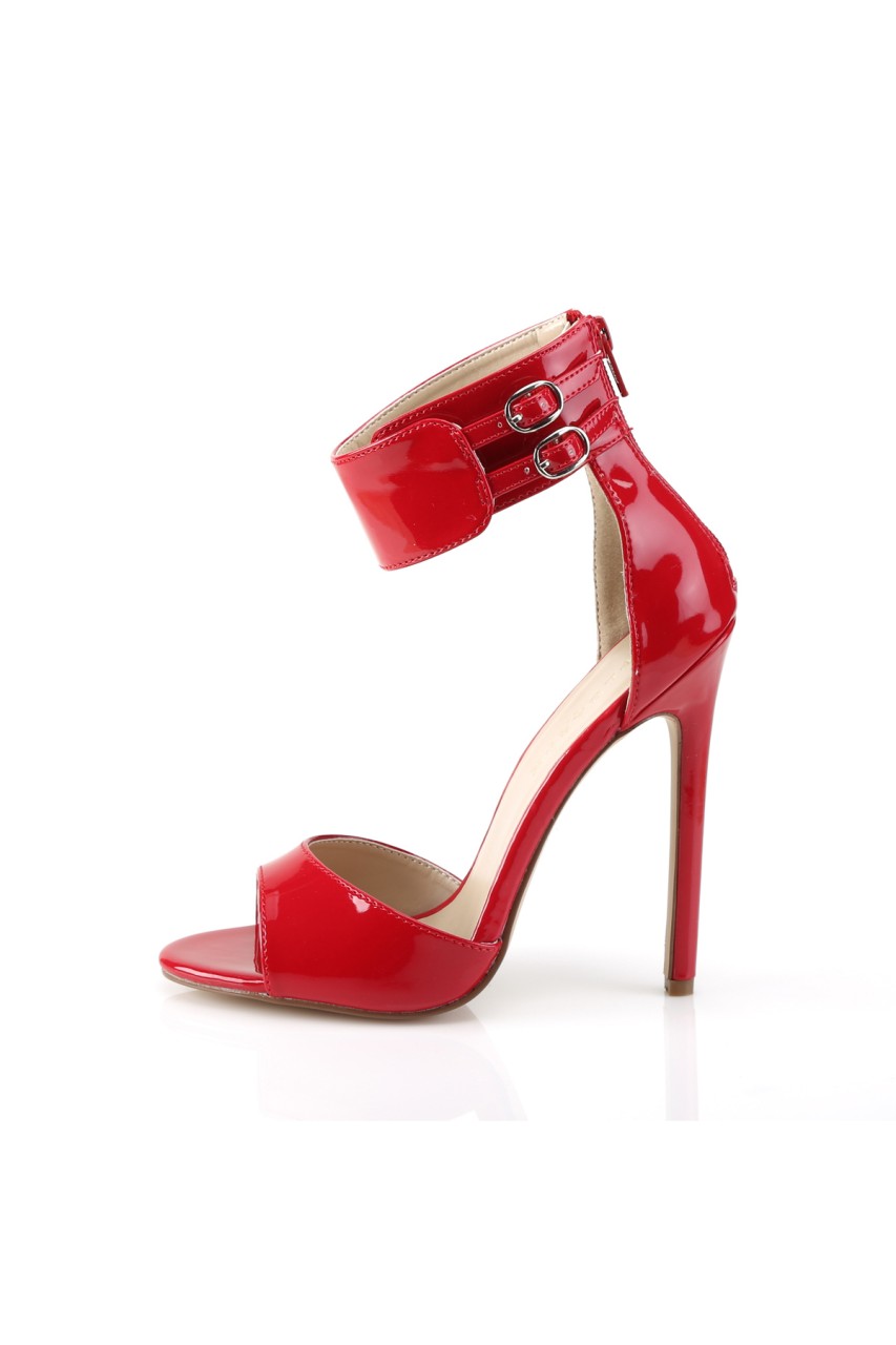 5″” (12.7cm) Stiletto Heel Closed Back Dual Buckled Ankle Strap Sandal, Back Zip Closure