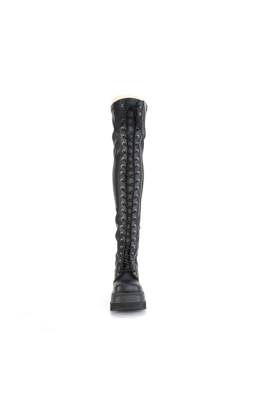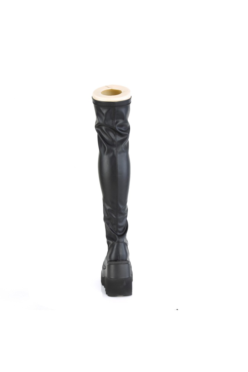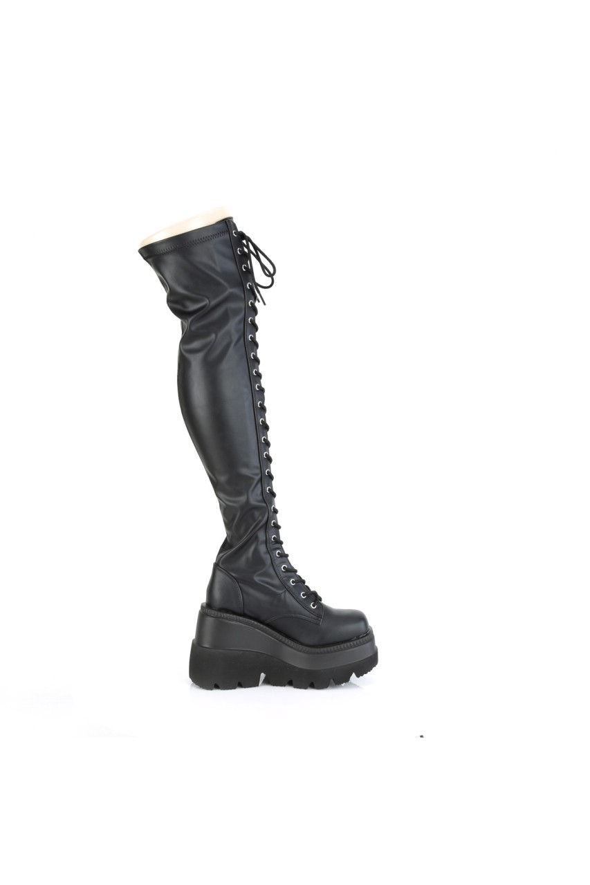 4 1/2″” (114mm) Wedge Platform Lace-Up Stretch Thigh-High Boot, Full Length Outside Metal Zip Closure