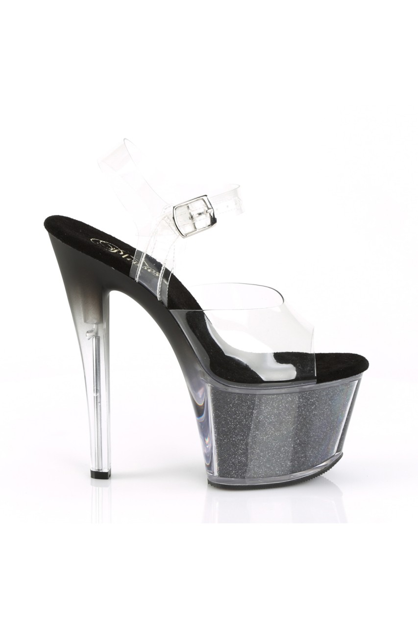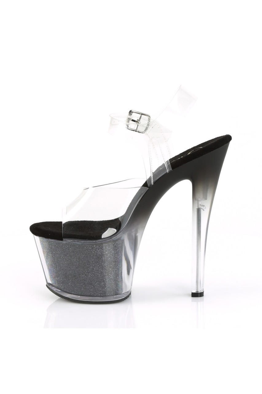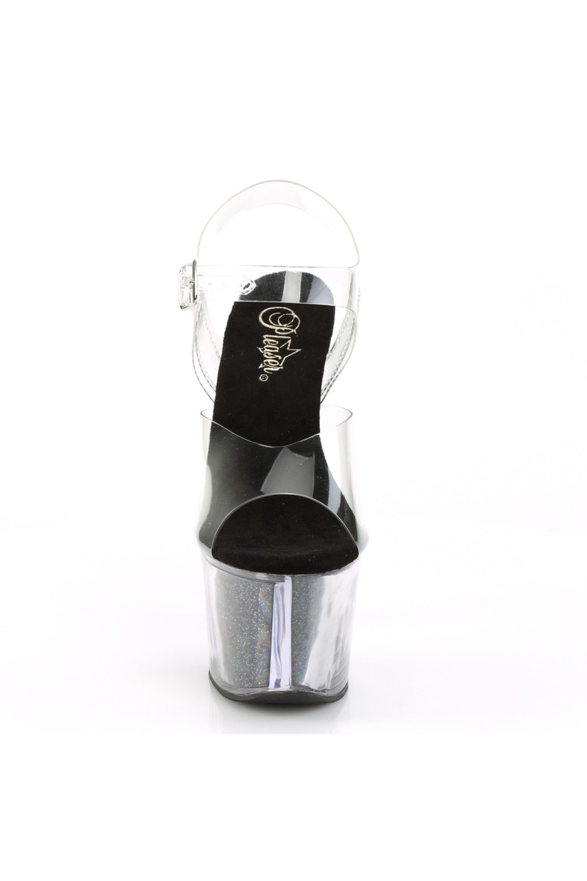7″” (178mm) Heel, 2 3/4″” (70mm) Platform Ankle Strap Sandal w/ Tinted Heel Featuring Glitter Inserts in the Platform Bottom
