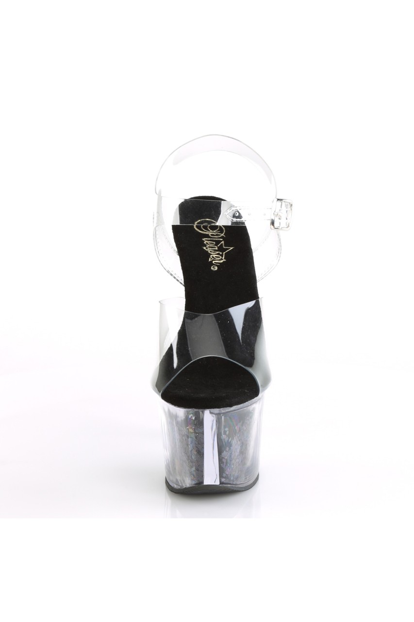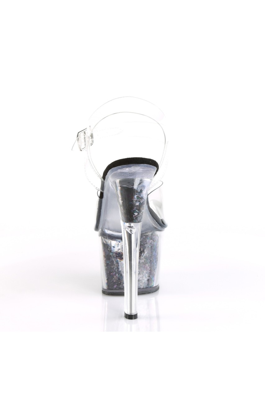 7″” (178mm) Heel,, 2 3/4″” (70mm) Platform Ankle Strap Sandal w/ Holographic Glitter Filled Platform Bottom