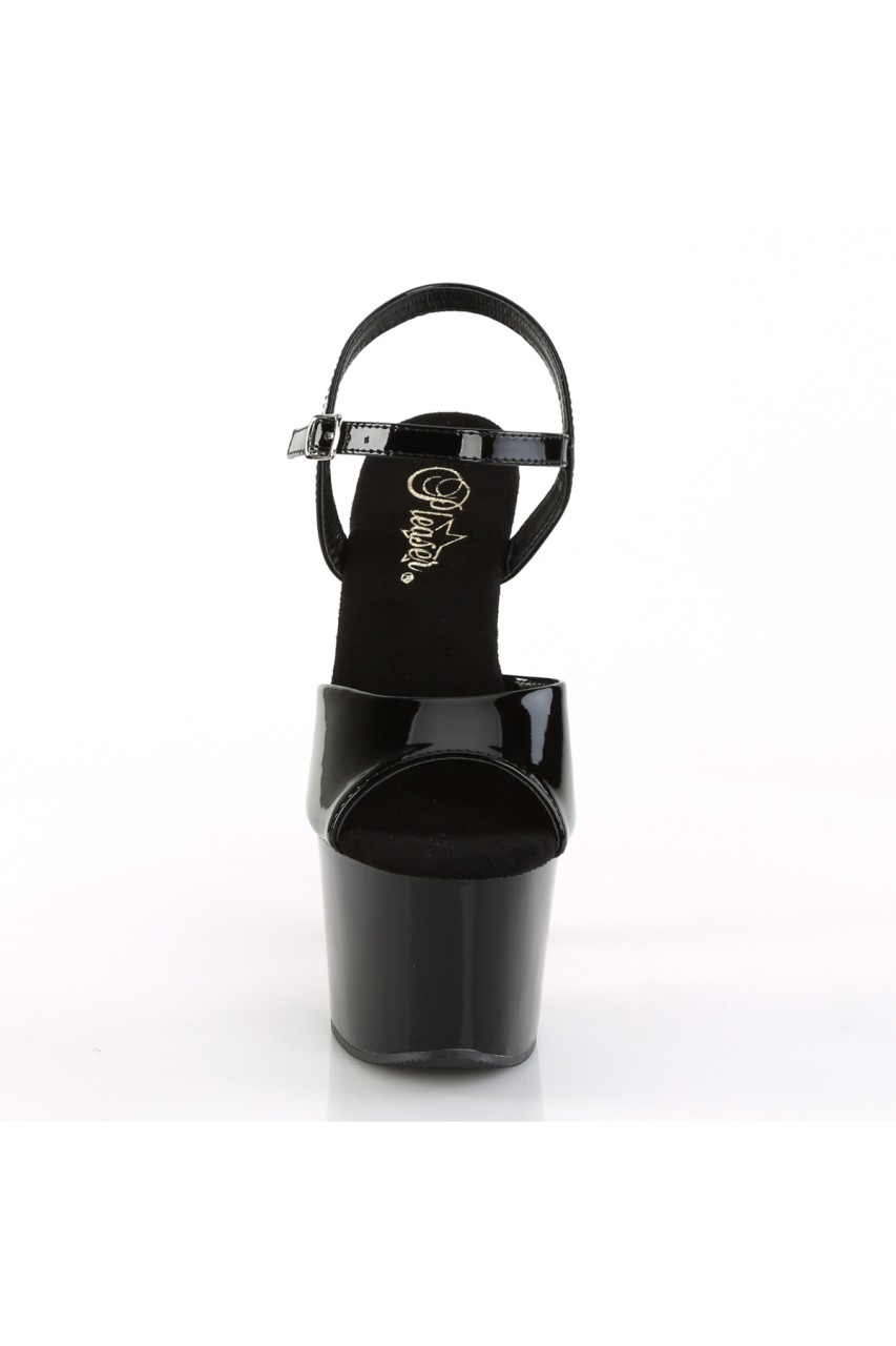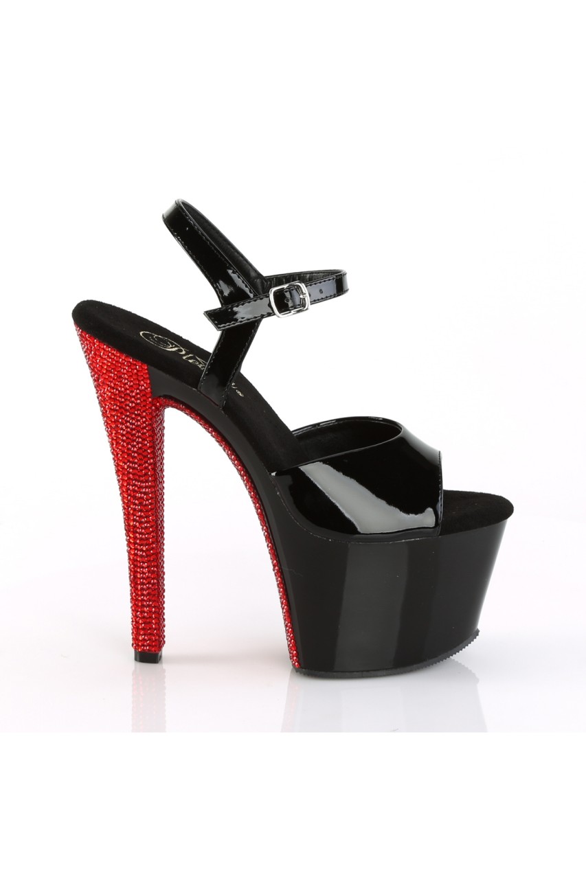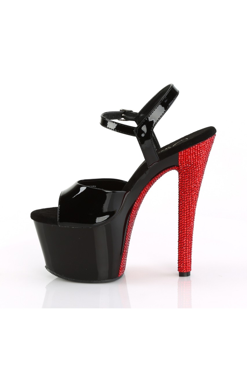 7″” (178mm) Heel, 2 3/4″” (70mm) Platform Ankle Strap Sandal w/ Contrast Rhinestones on the Heel & Platform Bottom