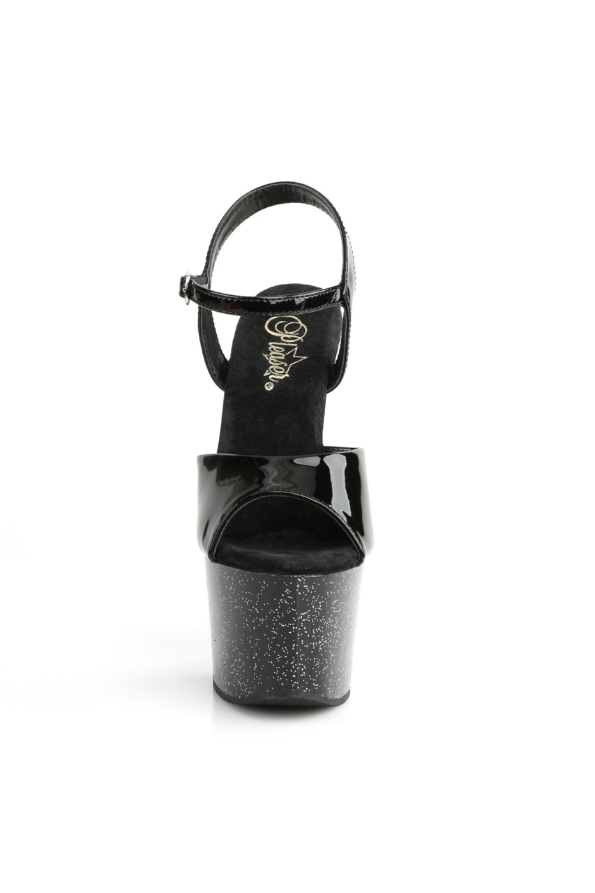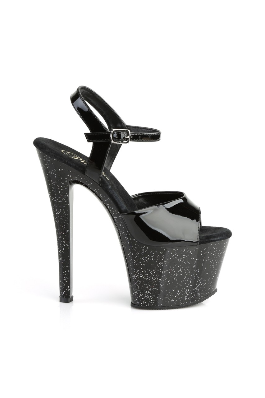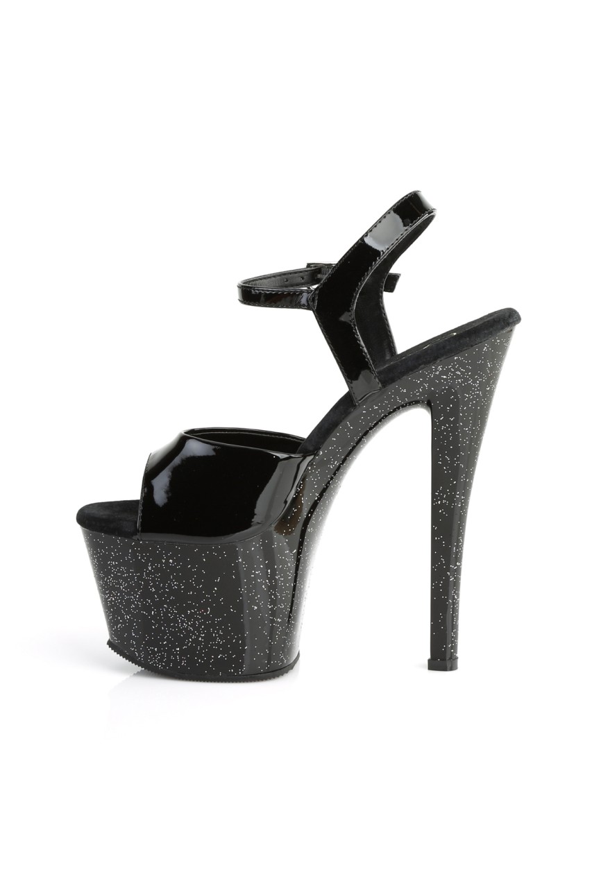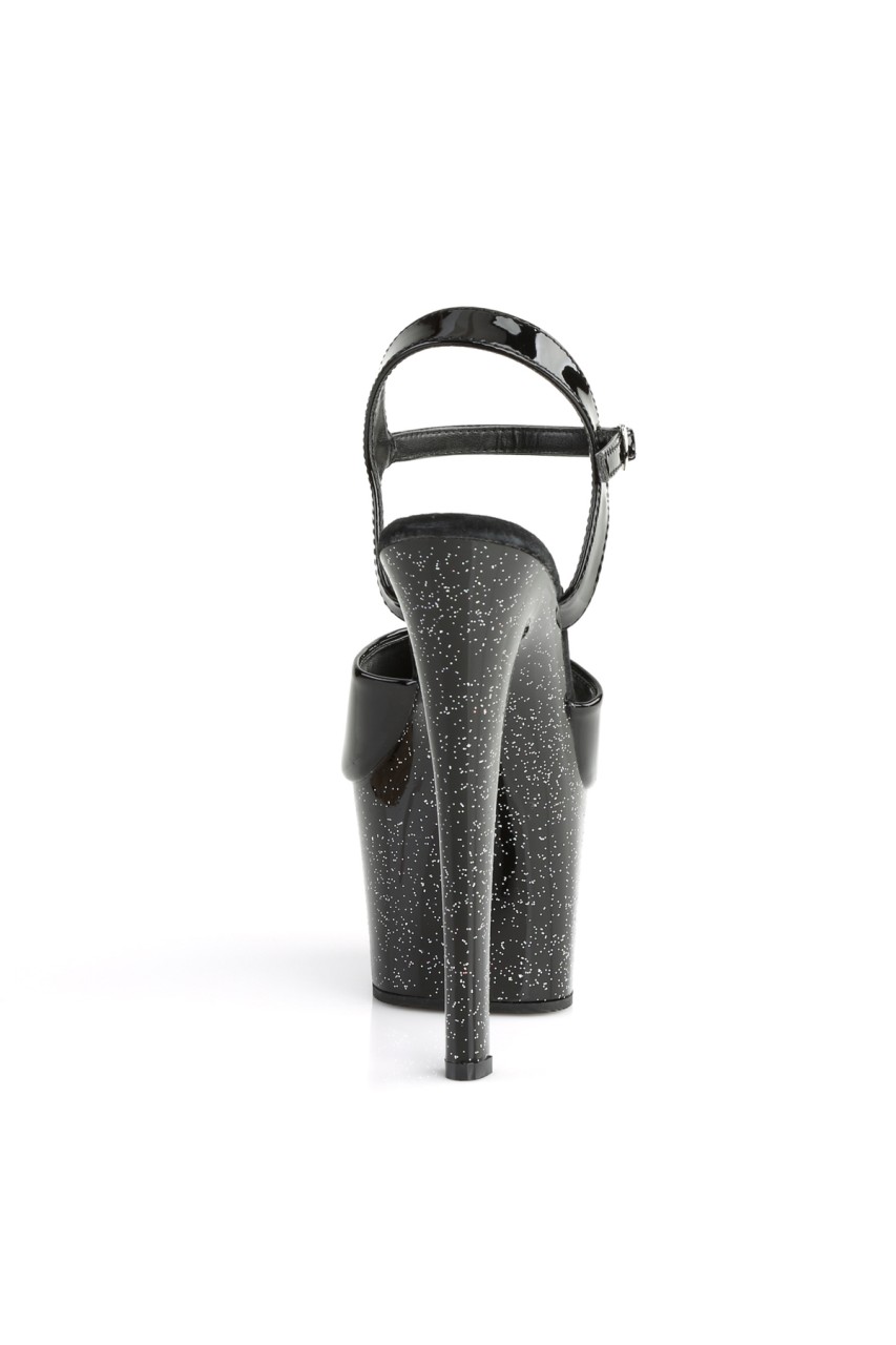 7″” (17.8cm) Heel, 2 3/4″” (7cm) Platform Ankle Strap Sandal Featuring Mini Iridescent Glitter on Entire Bottom