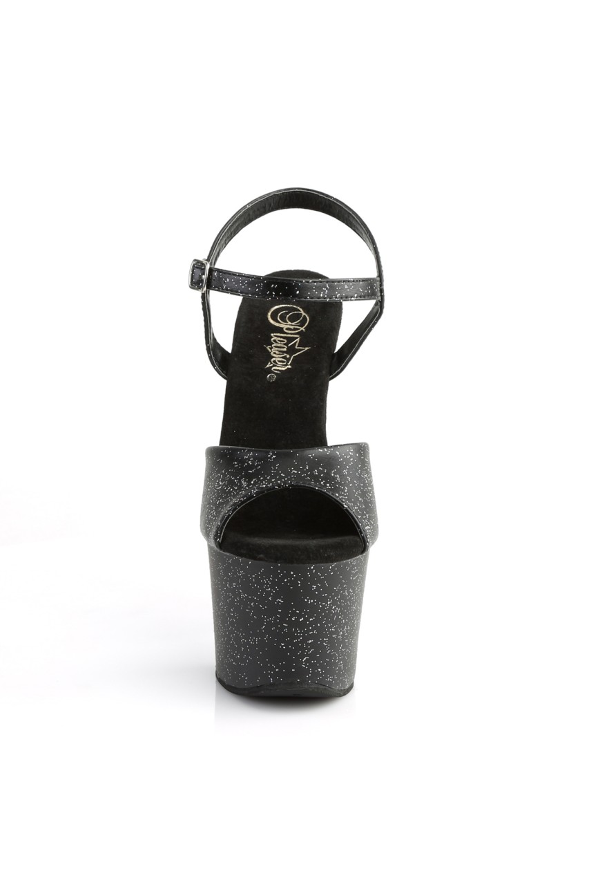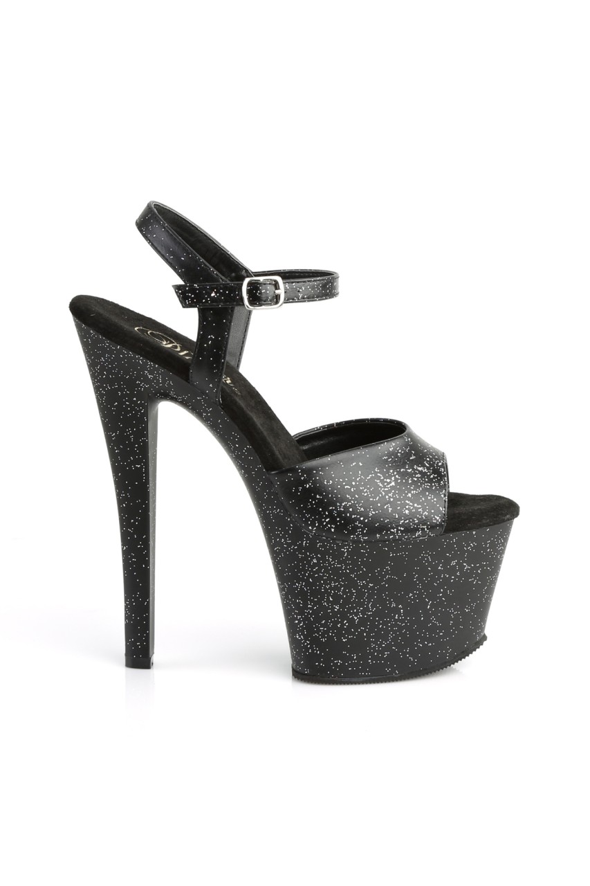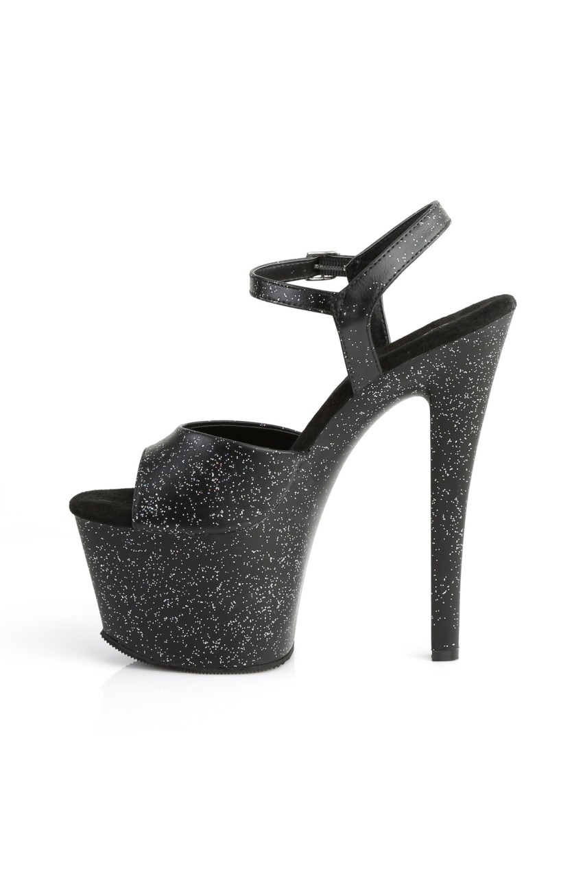 7″” (17.8cm) Heel, 2 3/4″” (7cm) Platform Ankle Strap Sandal Featuring Mini Iridescent Glitter on the Entire Upper & Platform