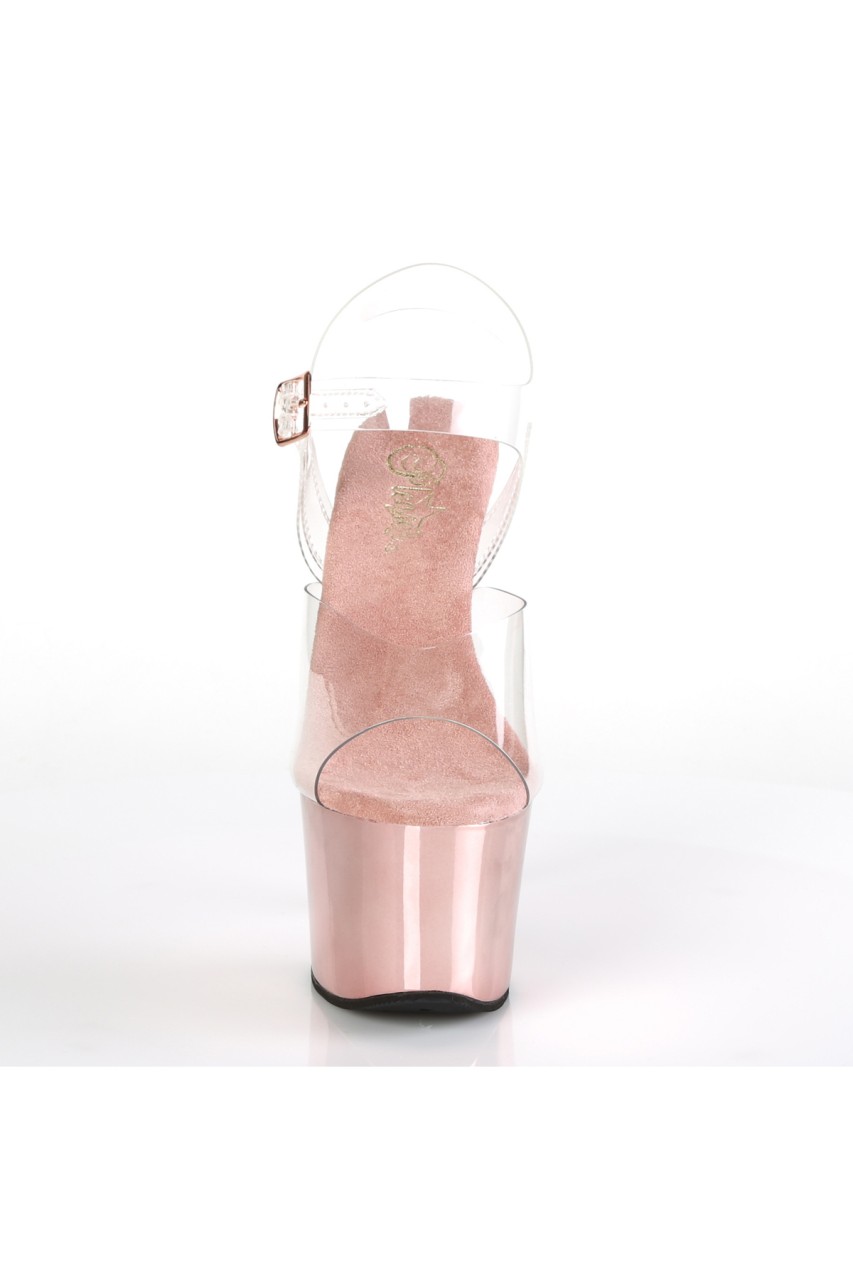 7″” (178mm) Heel, 2 3/4″” (70mm) Platform Ankle Strap Sandal w/ Chrome Plated Platform Bottom