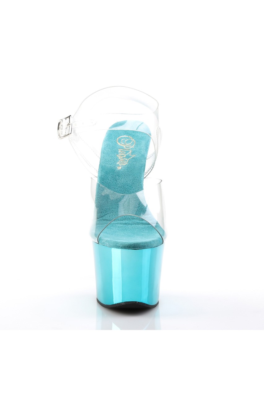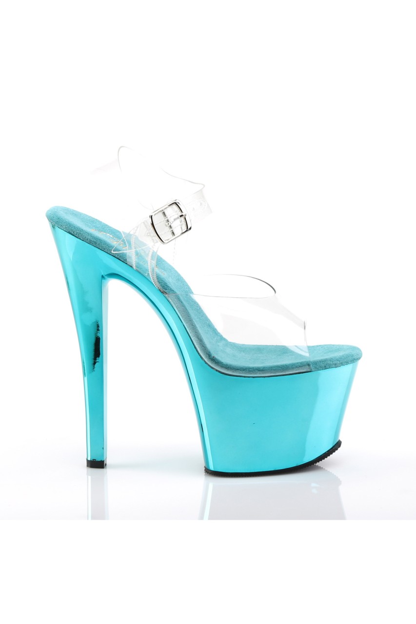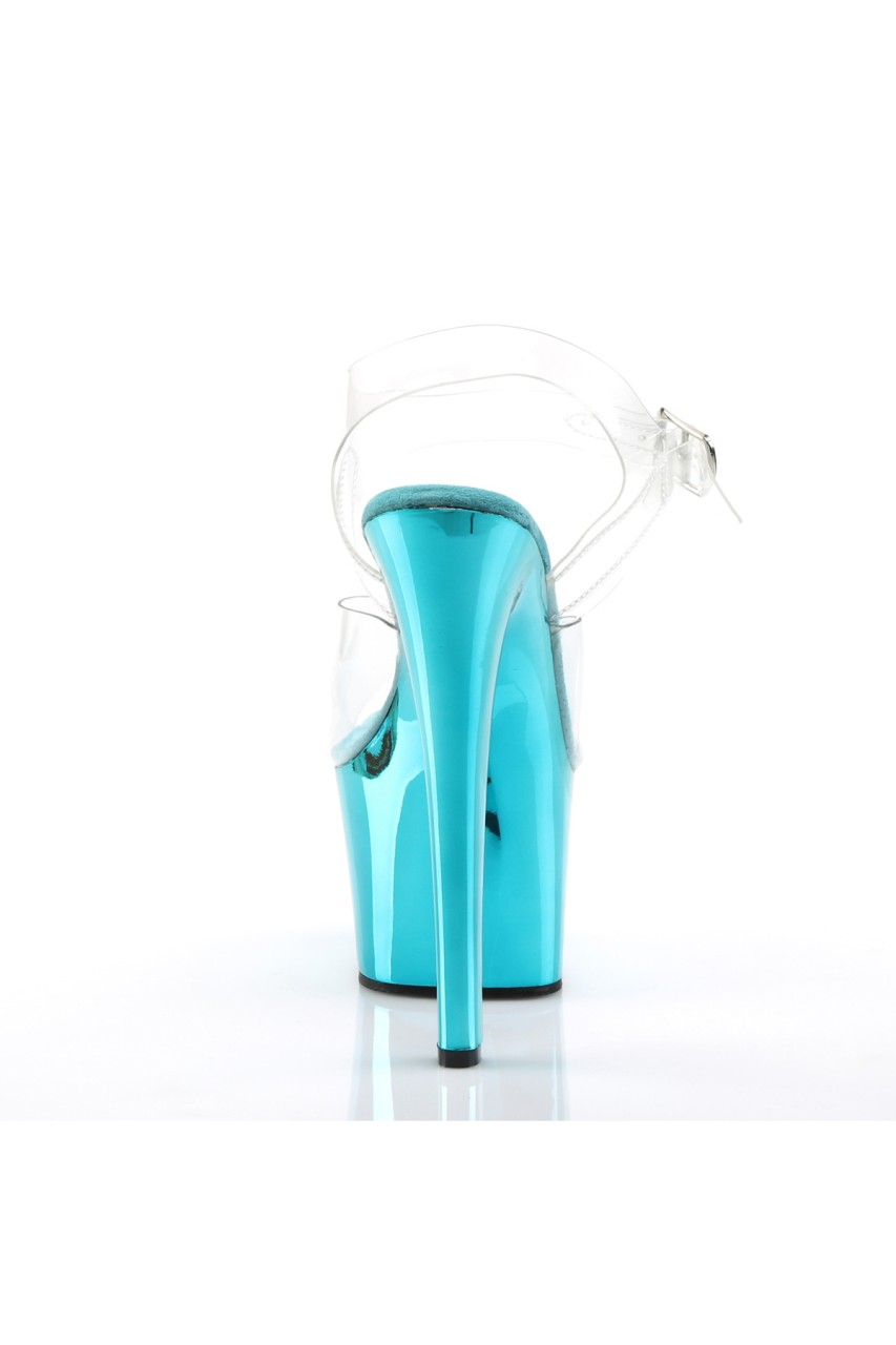7″” (17.8cm) Heel, 2 3/4″” (7cm) Platform Ankle Strap Sandal with Chrome Plated Bottom