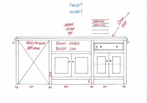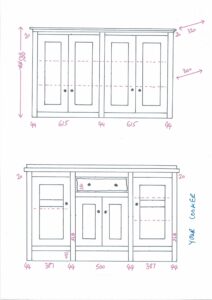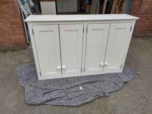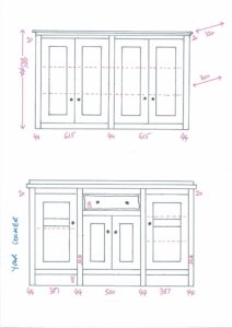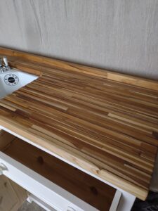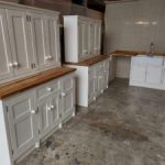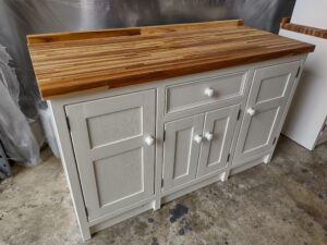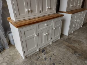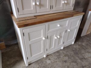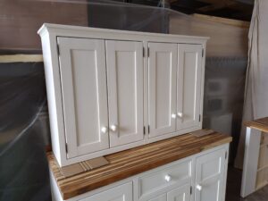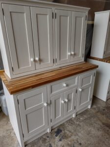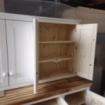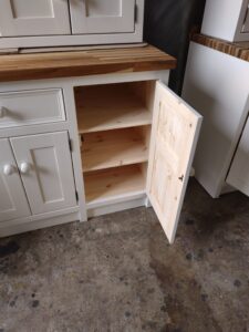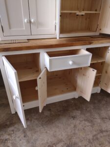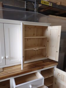 All our cabinets are made from 100% pine boards. Our worktops are available in hard wearing oak in 25mm and 40mm thicknesses. We can make worktops from composite laminate if you prefer.