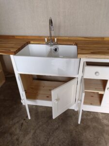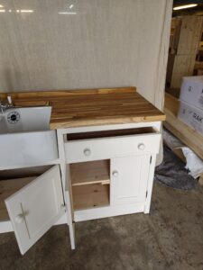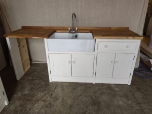 - Belfast Sink Unit to house your Freestanding Appliance (2236mm long, 620mm deep, 944mm high) includes sink 800mm double butler ceramic sink and chrome mixer tap.