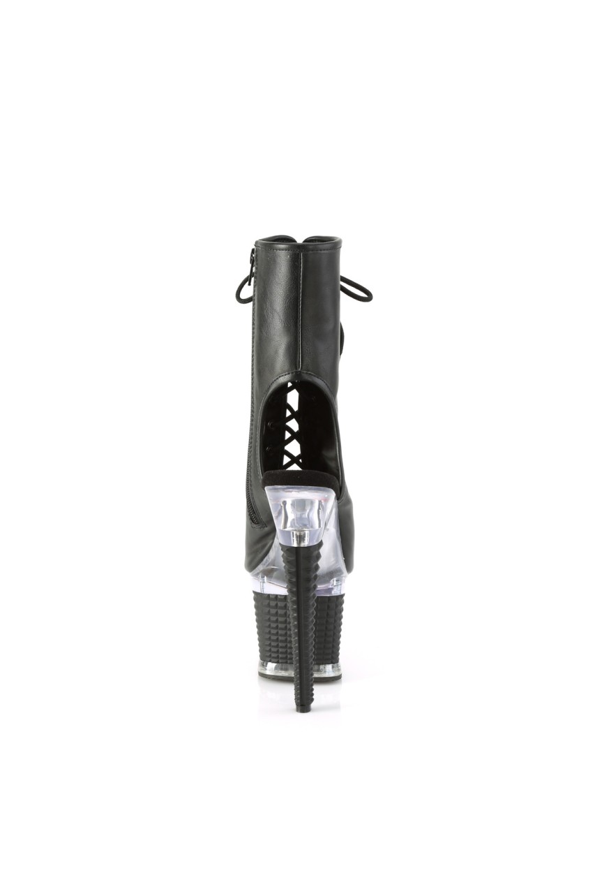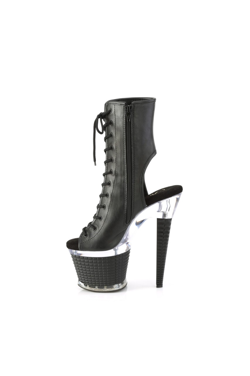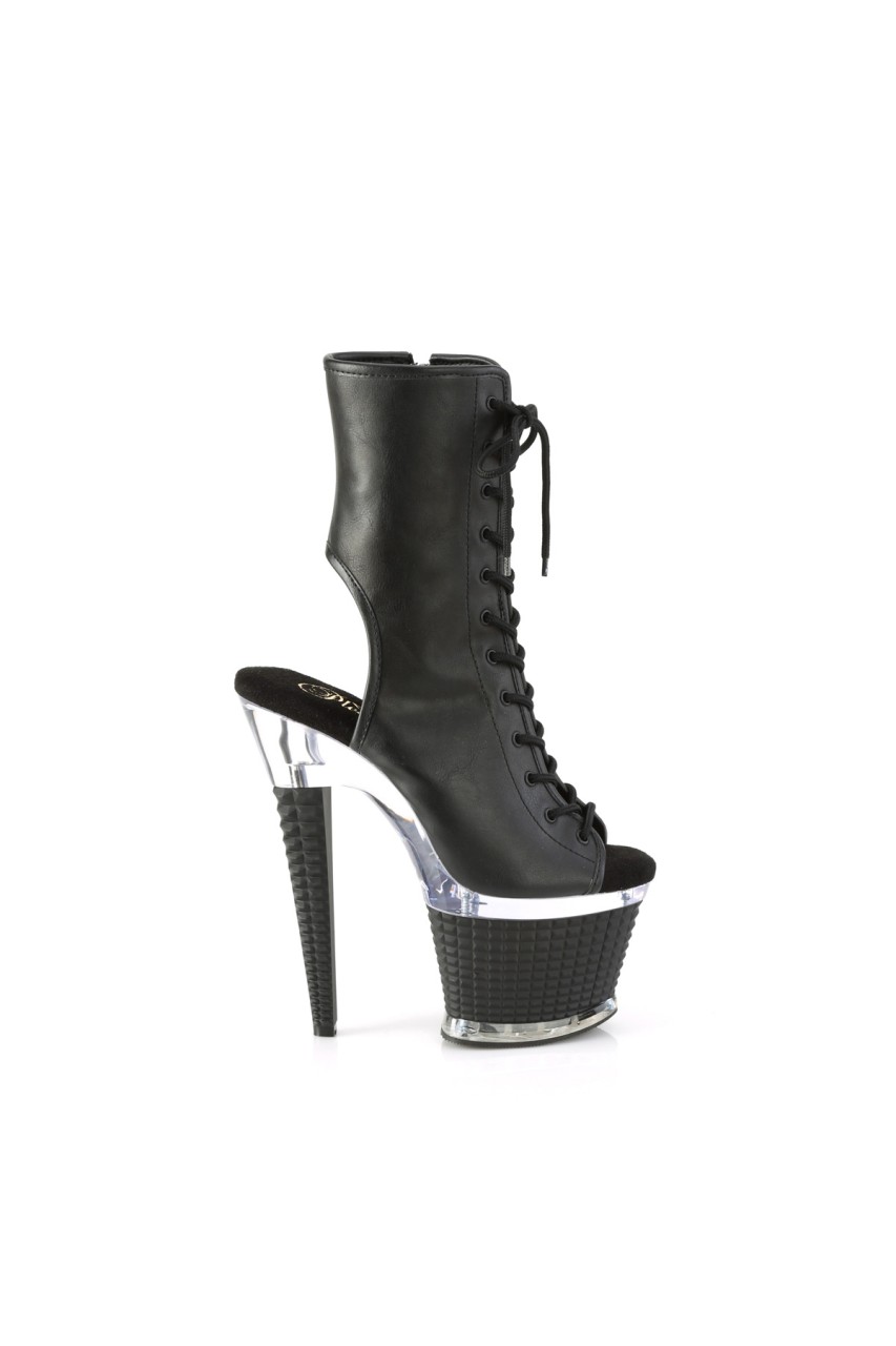 (178mm) Heel, 3″” (76mm) Textured Platform Open Toe/Heel Lace-Up Front Ankle Boot, Inner Side Zip Closure
