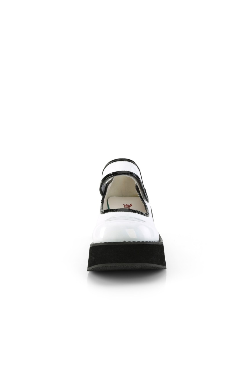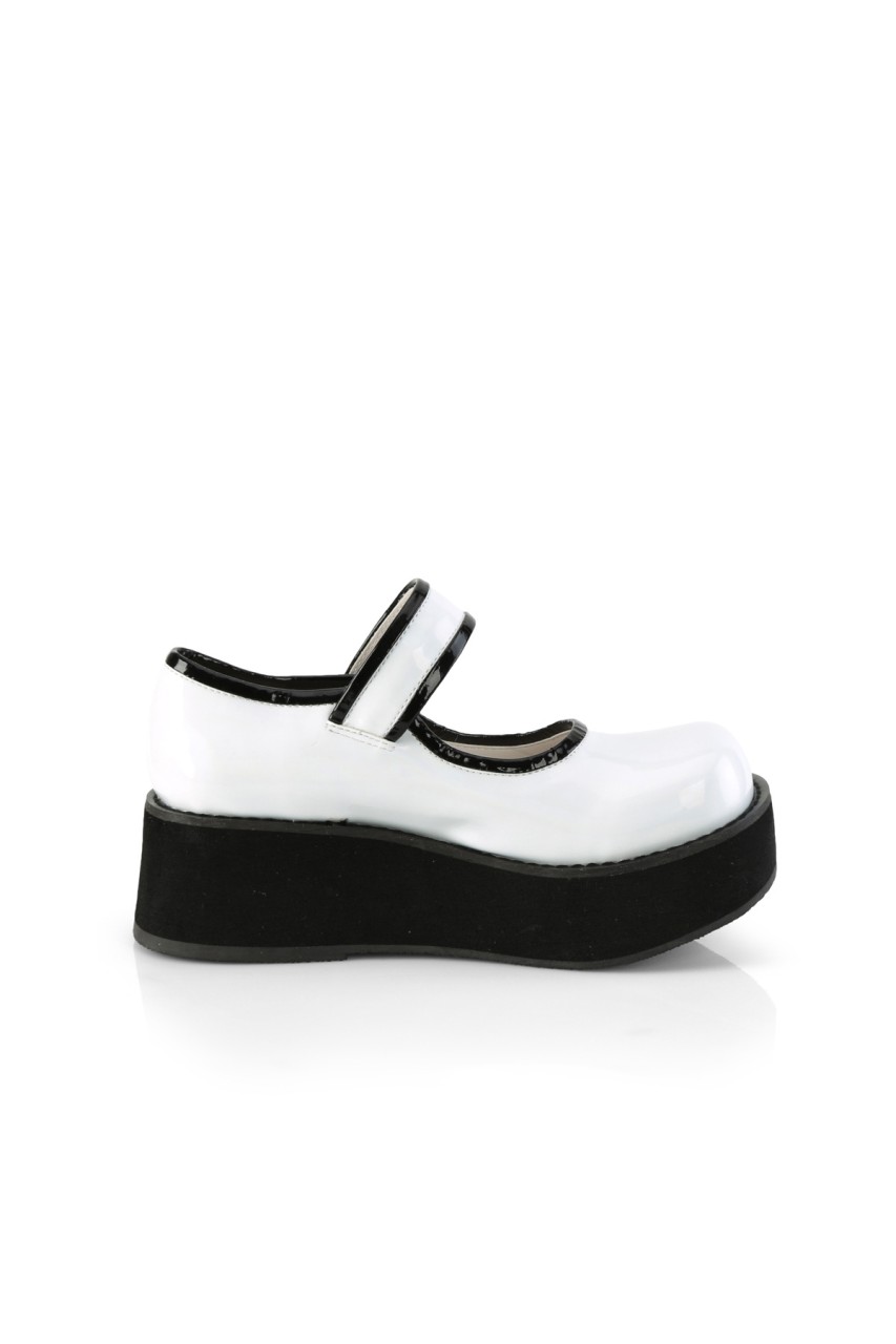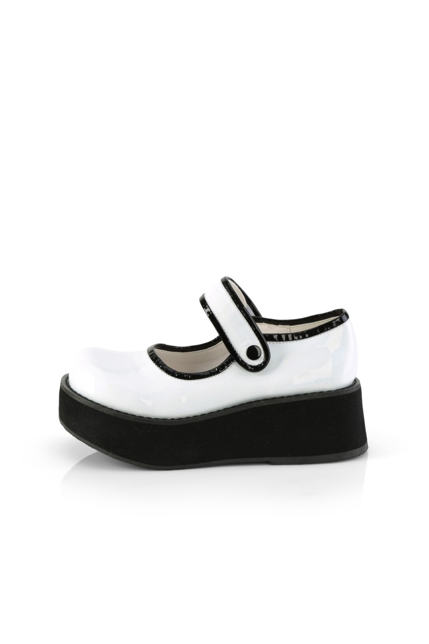 2 1/4″” (57mm) Platform Hook N Loop Mary Jane w/ Contrast Piping & Button Detail