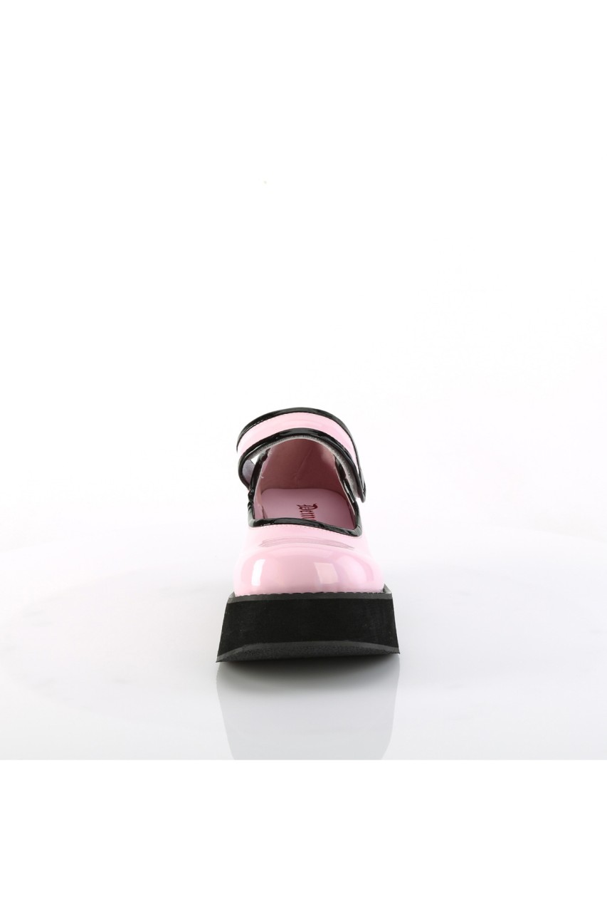 2 1/4″” (57mm) Platform Hook N Loop Mary Jane w/ Contrast Piping & Button Detail
