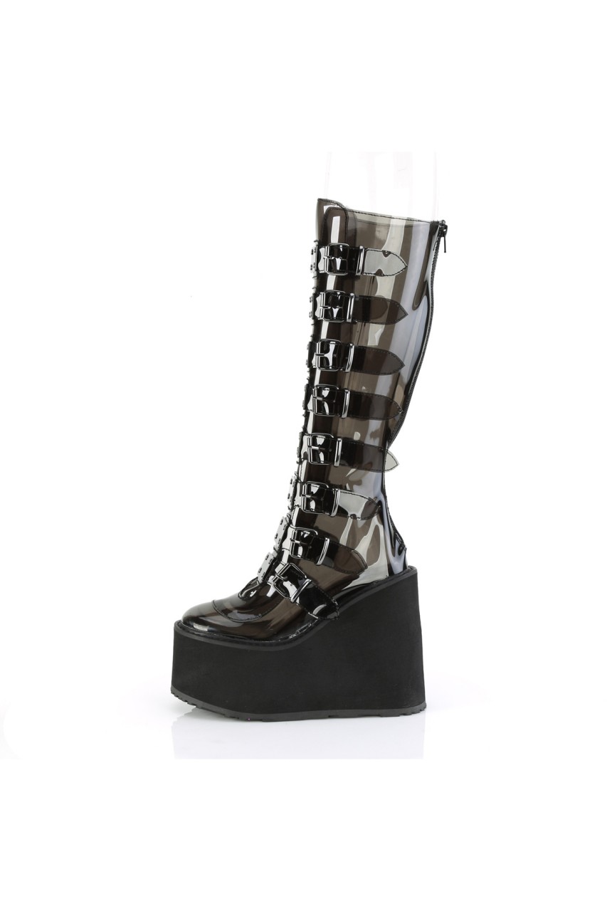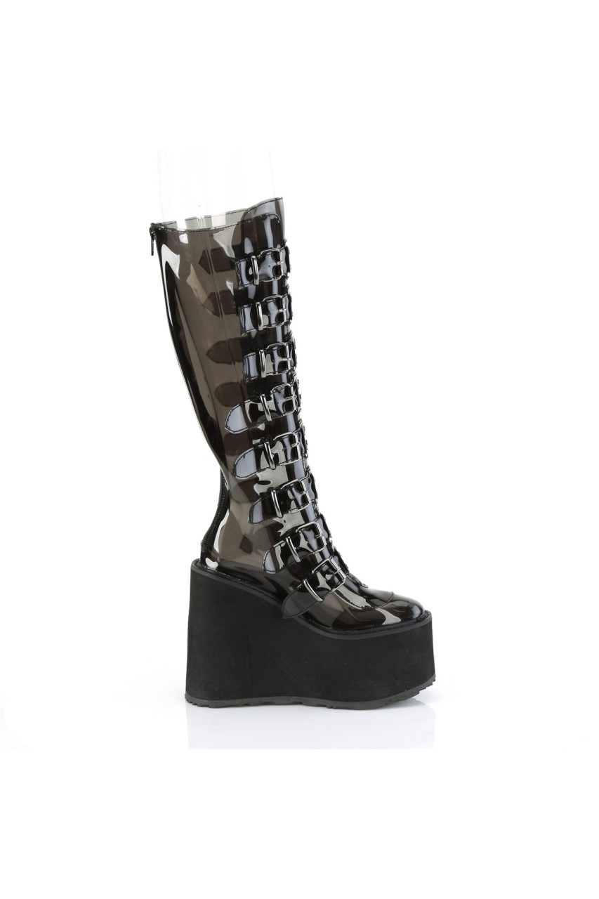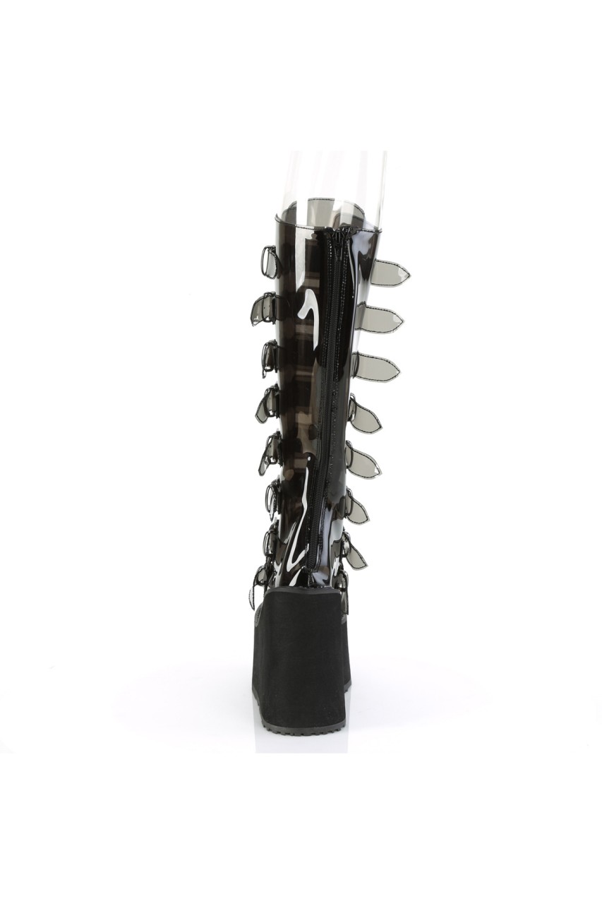 5 1/2″” (140mm) Platform Knee High Boot Featuring 8 Buckle Straps w/ Metal Plates at Center, Back Metal Zip Closure