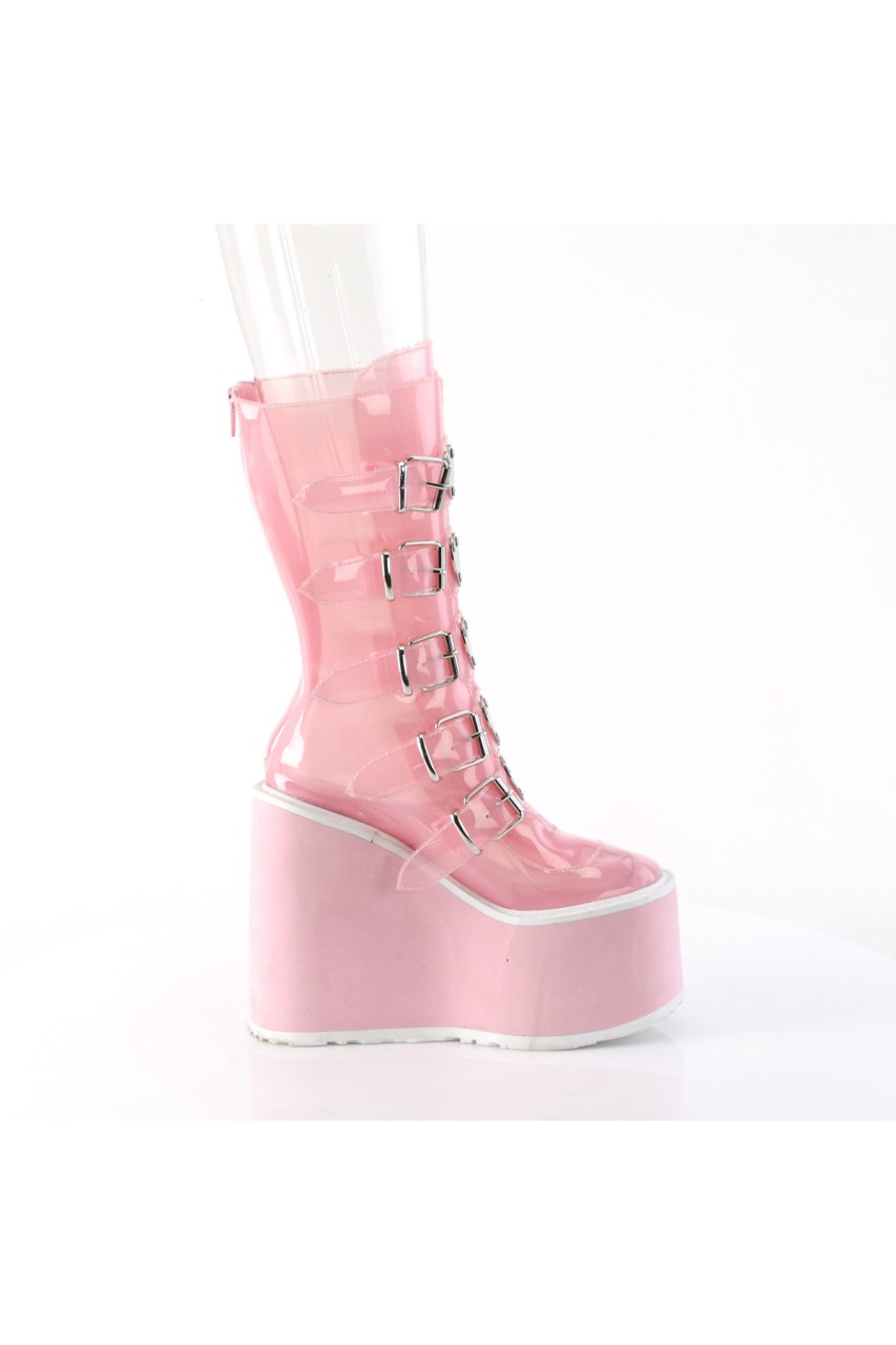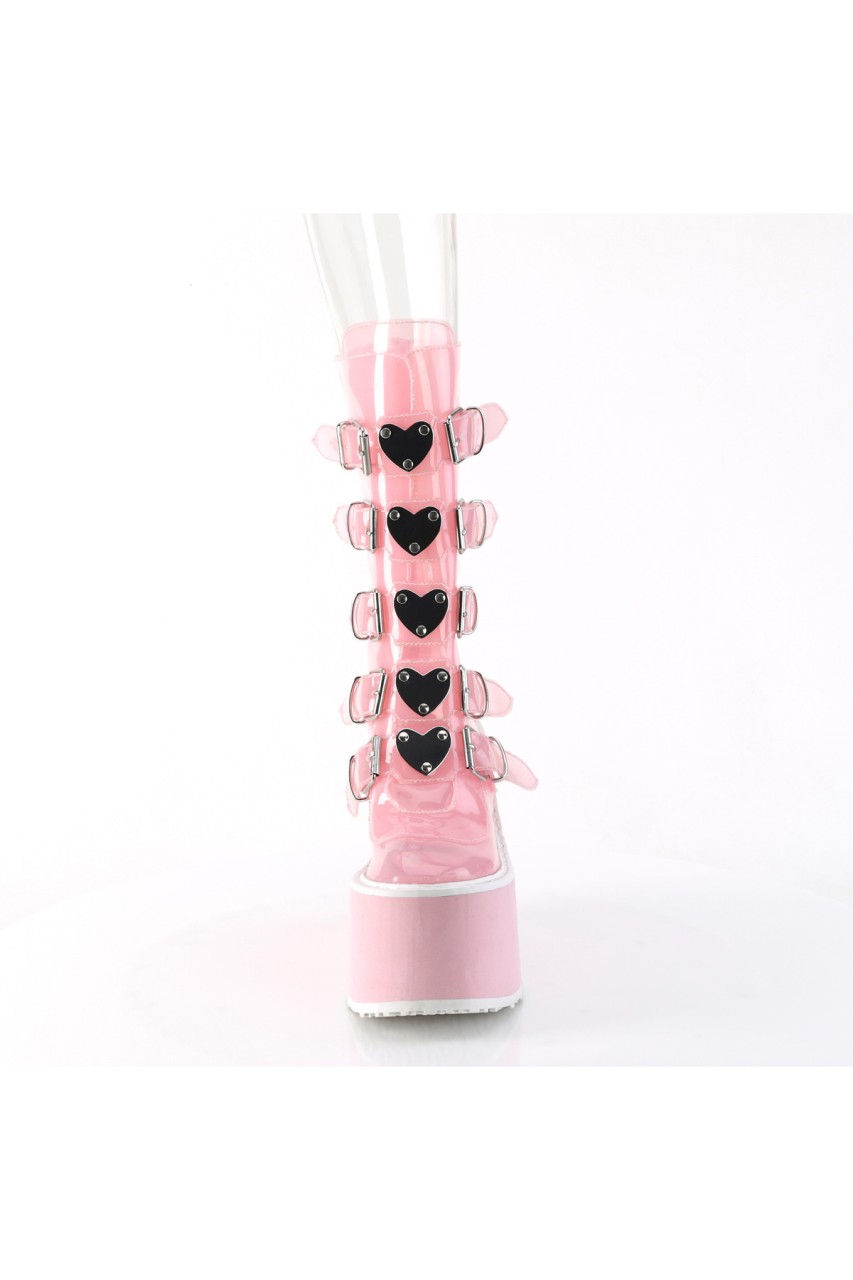 5 1/2″” (140mm) Platform Mid-Calf Boot Featuring 5 Buckle Straps w/ Heart Shaped Metal Plates at Center, Back Metal Zip Closure