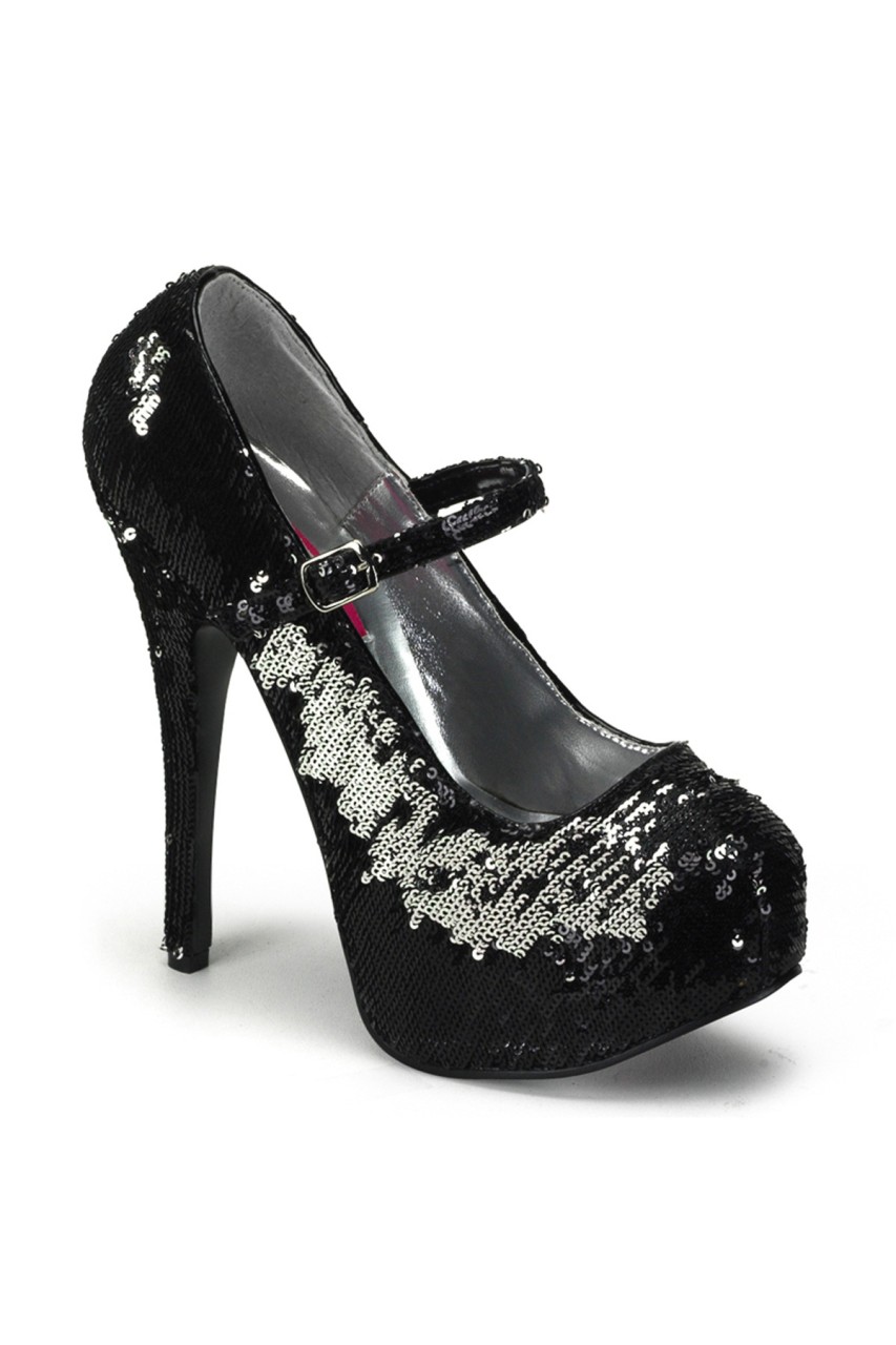 5 3/4″” (14.6cm) Heel, 1 3/4″” (4.5cm) Concealed Platform, Reversible Sequins, Adjustable Strap, Mary Jane Pump