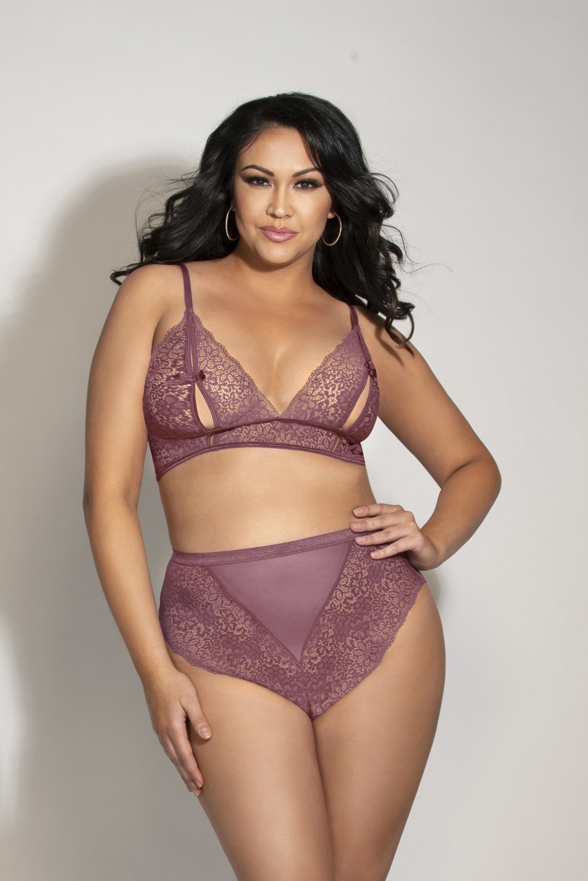 Two Piece Bralette Set. Lace Bralette With Peek-A-Boo Cups And High Waisted Panty – STM11293XP
