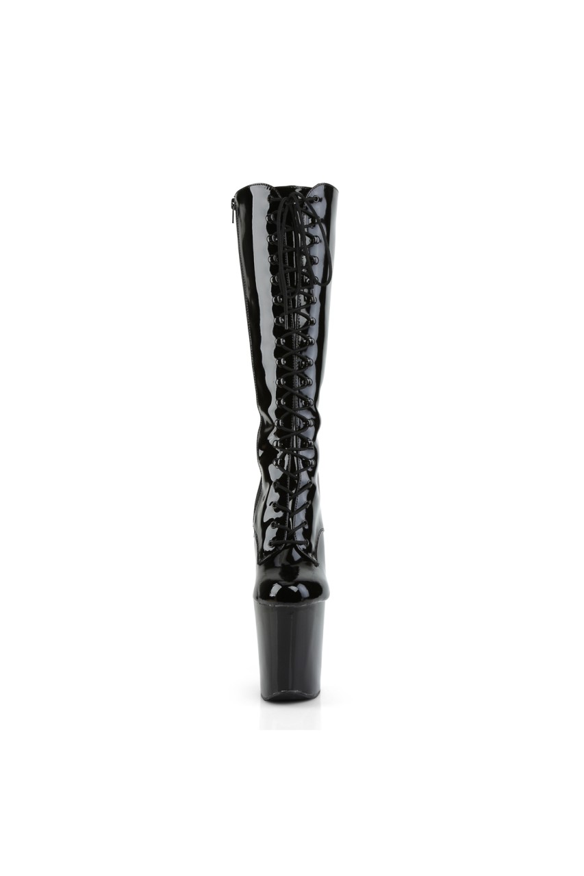8″” (20.3cm) Spike Heel, 4″” (10.2cm) Platform Calf Boot, Full Inner Side Zip Closure
