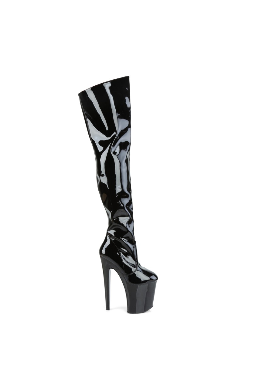 8″” (20.3cm) Spike Heel, 4″” (10.2cm) Platform Thigh Boot, Full Inner Side Zip Closure